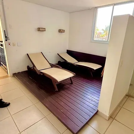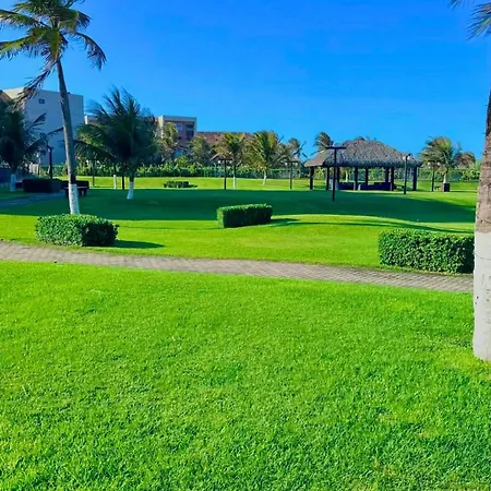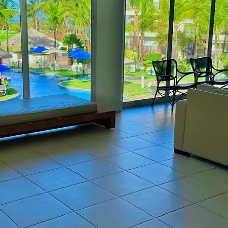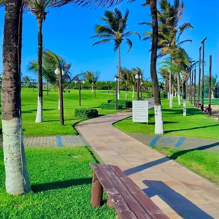 Den strandnära villan Apartament Jacuzzi Em Beach Living Resort Next To Beach Park Aquiraz, som ligger cirka 5 minuters promenad från Igreja Sao Francisco, lockar gästerna med utsikt över trädgården.